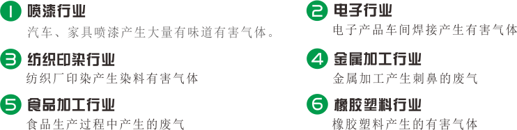 一(yī)、產生廢(fèi)氣、油煙、廢水、粉塵等工藝設備或(huò)工況,選取不同處理設備