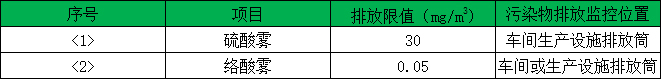 電鍍廢氣排放(fàng)執行《電鍍汙染物排放標準》(GB21900-2008)中新建企業大氣汙染物排放限值,具體(tǐ)值見下表: