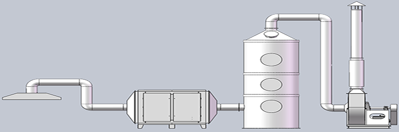 (2)然後再進入填料(liào)噴淋塔由稀堿液進(jìn)行(háng)中和吸收,達標後的尾氣最後通過離地不低於15m高的排氣筒高空排放。